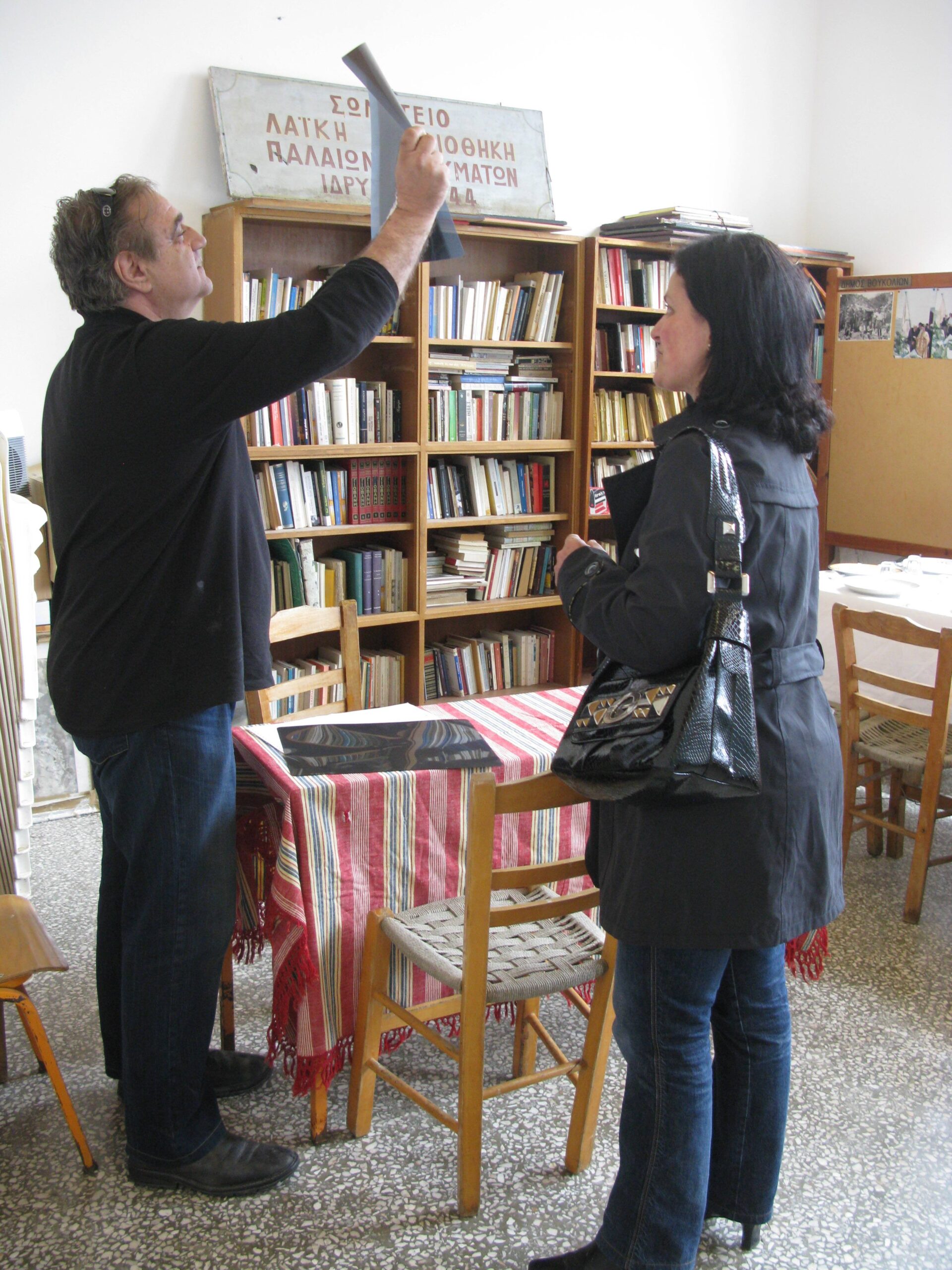 Στο Καφενείο των γυναικών στα Παλαιά Ρούματα, η κ. Βαρβάρα Τερζάκη-Παλλήκαρη, Πηνελόπη Gandhi, ο κ. M. Κολιοραδάκης, σχολικός σύμβουλος, η κ. Ε. Μοτάκη, υφάντρια και η καθ. Παιδαγωγικών κ. Π. Καλογιαννάκη, μαζί με υφάντριες από όλη την Κρήτη, συζήτησαν με τις γυναίκες της περιοχής και τις τοπικές υφάντρες, για την αξία του χειροποίητου και της υφαντικής τέχνης στην Κρήτη, την αποστολή Πηνελόπη Gandhi, τις τοπικές τεχνικές, τα ξόμπλια, την ηθική και τον πολιτισμό του αργαλειού.