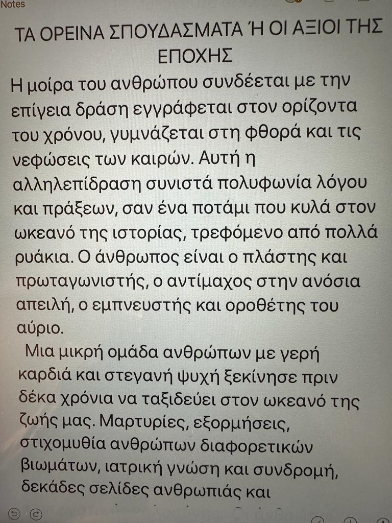 Κείμενο του κ. Γ. Ανδρουλιδάκη ” Τα ορεινά σπουδάσματα ή οι άξιοι της εποχής”