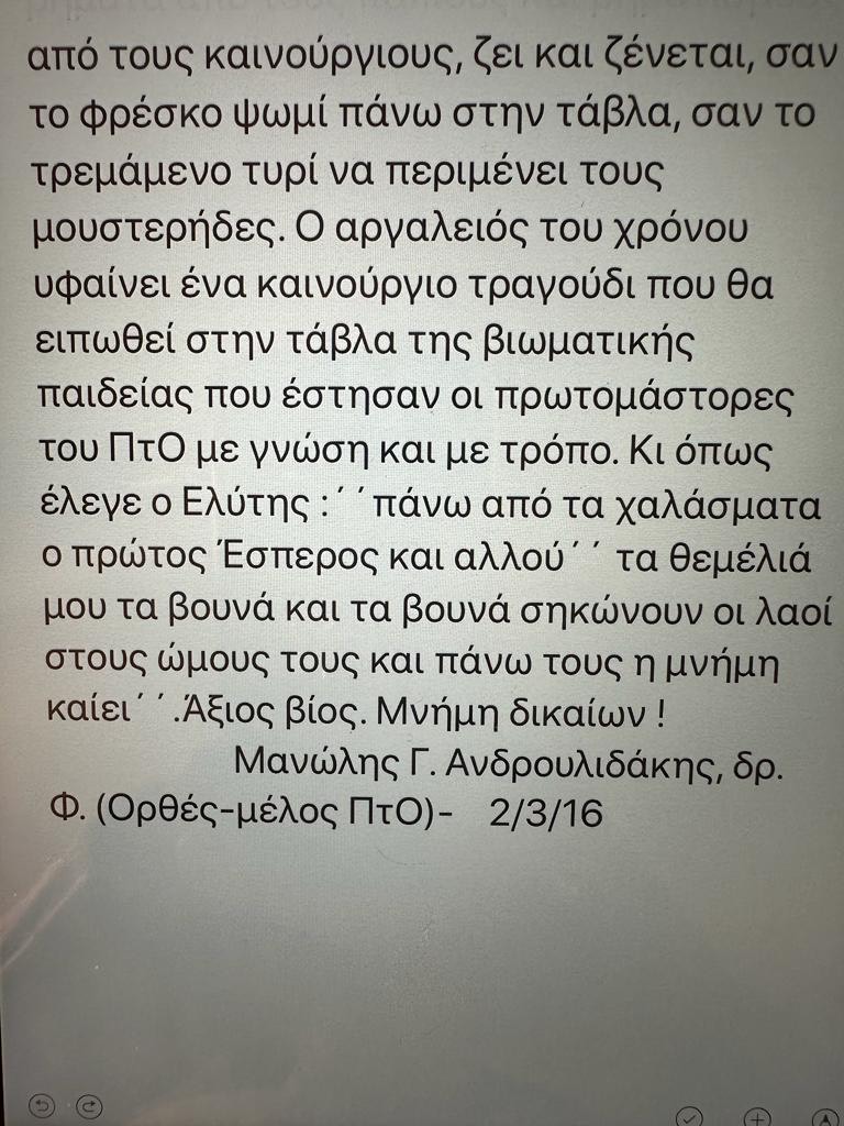 Μήνυμα από κ. Εμμ. Ανδρουλιδάκη, δρ. Κλασικής Φιλολογίας ΕΚΠΑ