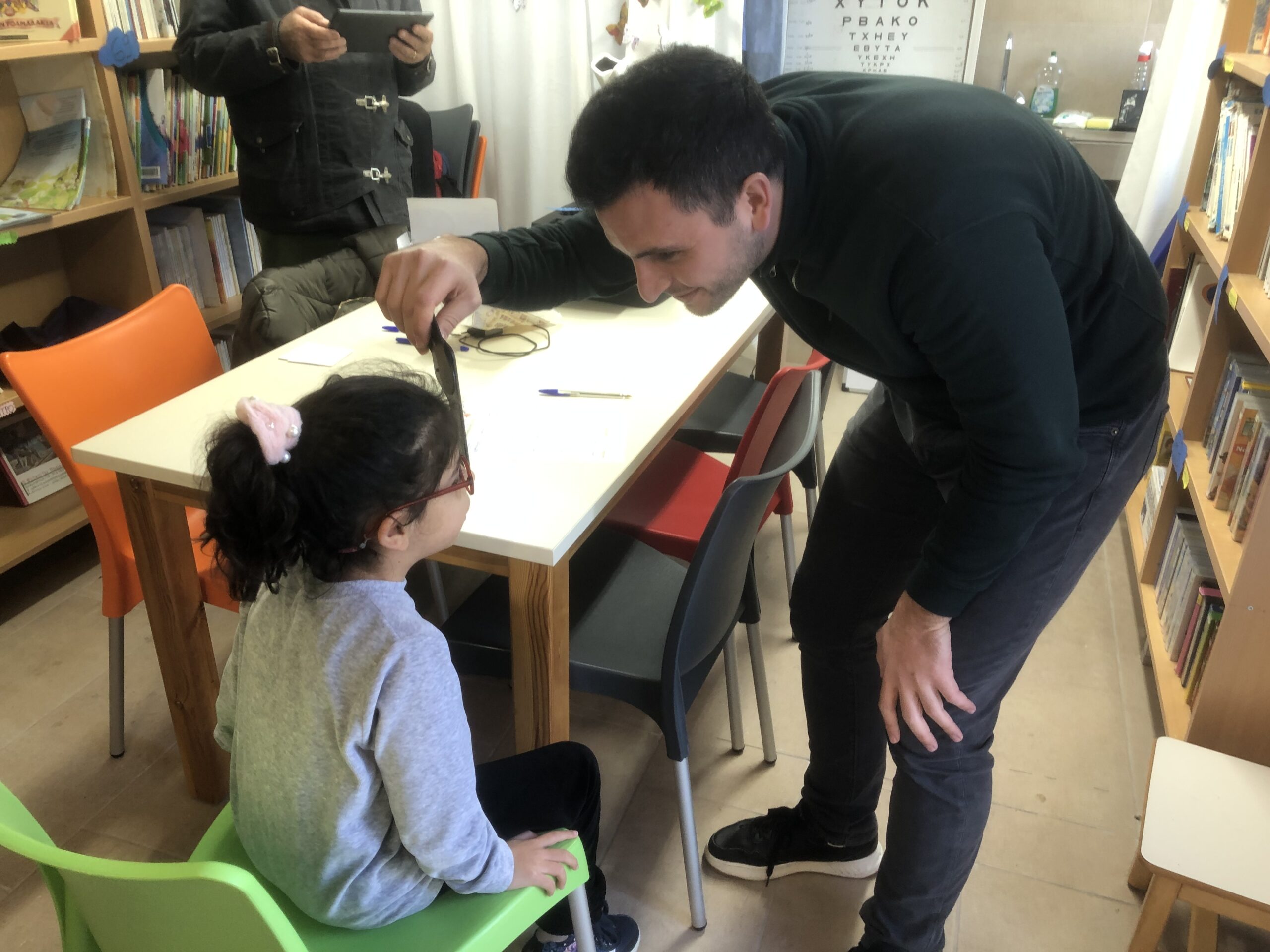 Παράλληλα, ο καθ. Ι. Παλλήκαρης, μαζί με ομάδα ιατρών και νοσηλευτών εξέτασαν οφθαλμολογικά, τους μαθητές του σχολείου.