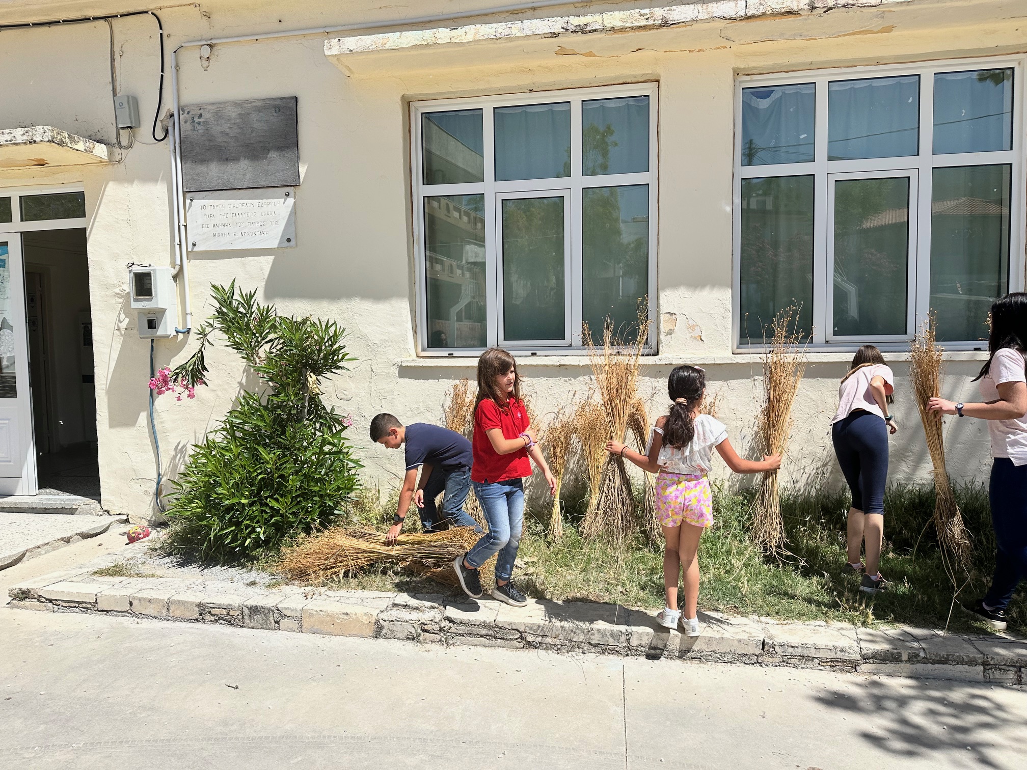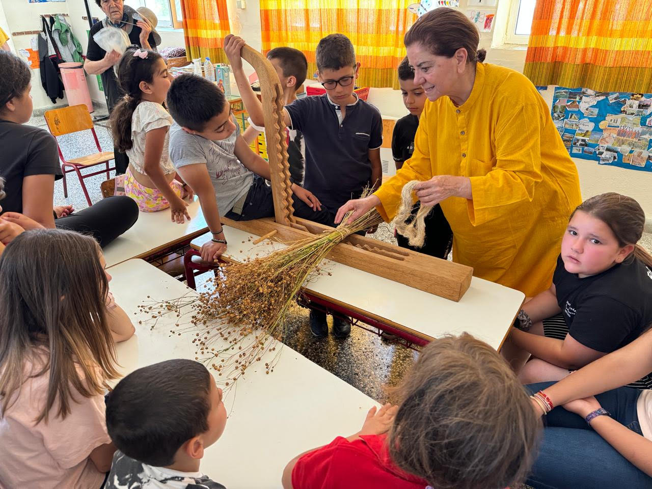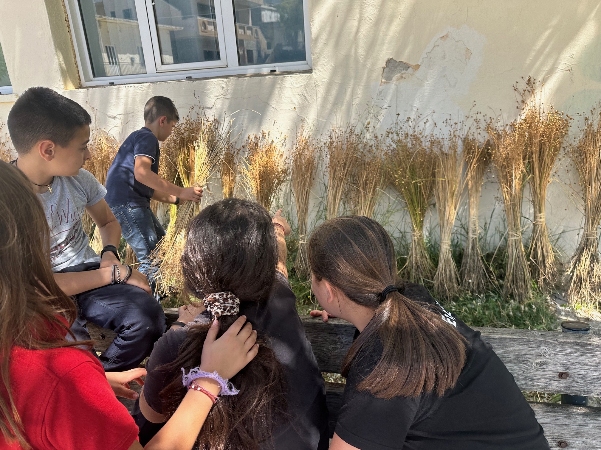 Flaxseed harvest, by the students of the villages of Avdelas and Agios Mamas in Mylopotamos, Rethymno