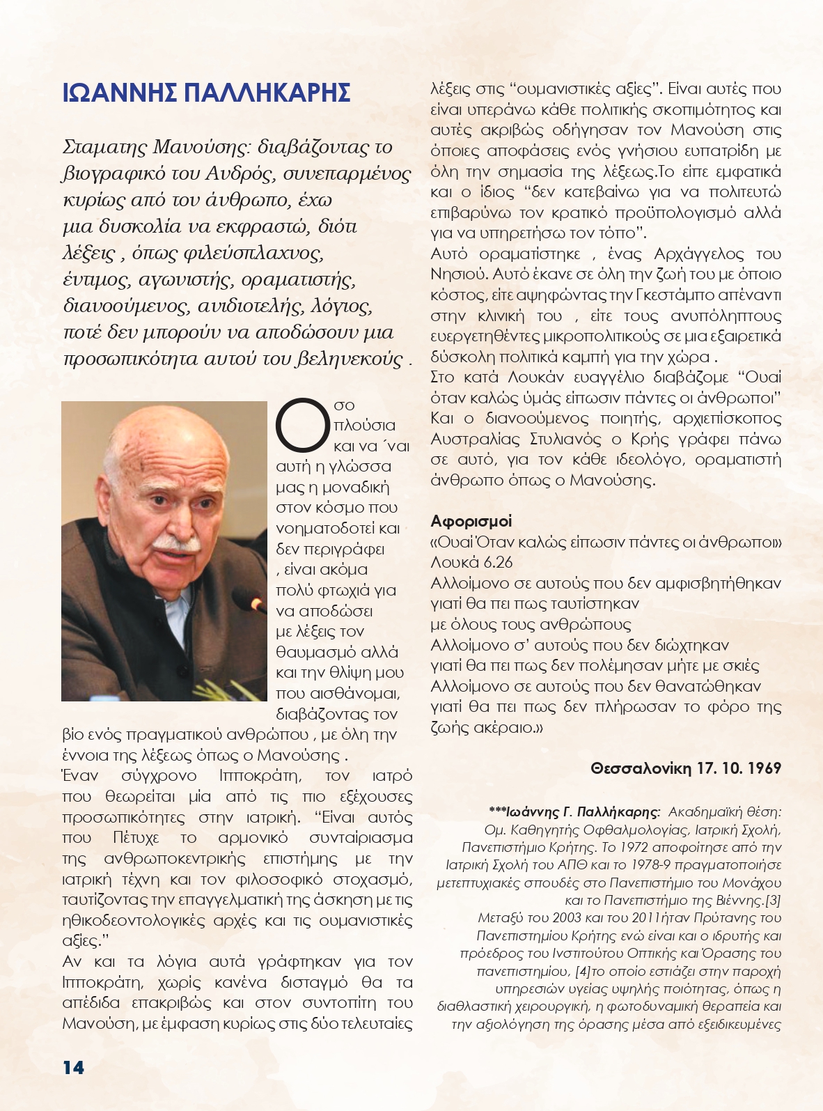 Professor Mr. Ioannis Pallikaris was a guest speaker at the presentation of Mr. Nikos Manousis’ book, “STAMATIS N. MANOUSIS – A life story”, which took place at the Athens Concert Hall on February 10, 2025.